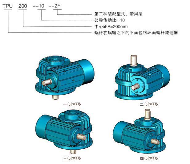 A:TPG-通用型平面包絡環(huán)蝸桿減速器,蝸桿可在蝸輪之上、之下、水平之側或垂直在側