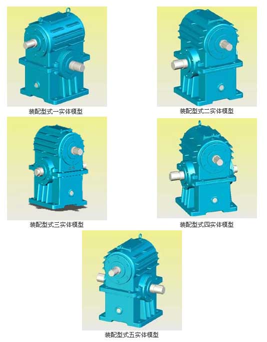 圓柱蝸桿減速器的標記包括:型號、中心距、傳動比、裝配型式